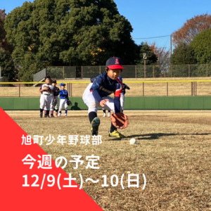 旭町少年野球部2023年12月9(土)~10(日)の活動予定です。見学・体験参加お待ちしています!